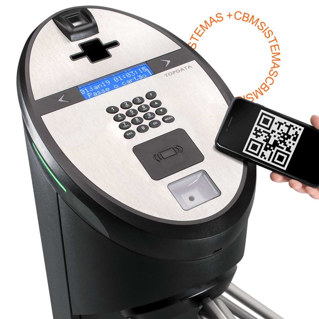 locais de grande fluxo de pessoas. Opções de Leitores: Biometria, Cartão de Proximidade ASK 125 KHz, Cartão de Proximidade MIF 13,56KHz, Qr-Code e Senha,
